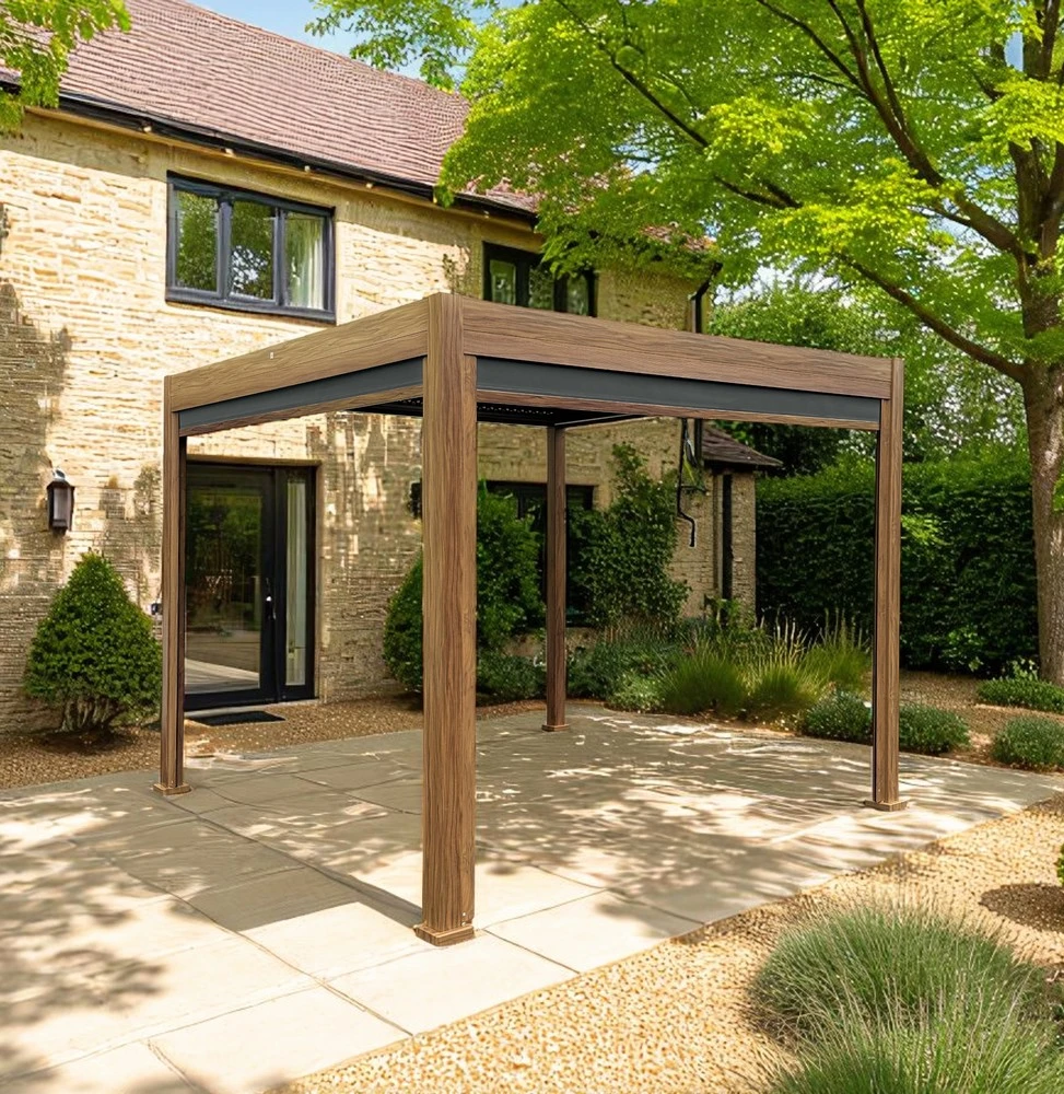 Transform your garden into a year-round sanctuary with the Amalfi 3x3 Pergola in wood foil, exclusive to and designed by Blue Diamond. Featuring a manual louvre roof for effortless shade control, integrated LED strip lighting, and a built-in drainage system, this premium pergola brings contemporary elegance and practicality to your outdoor living.