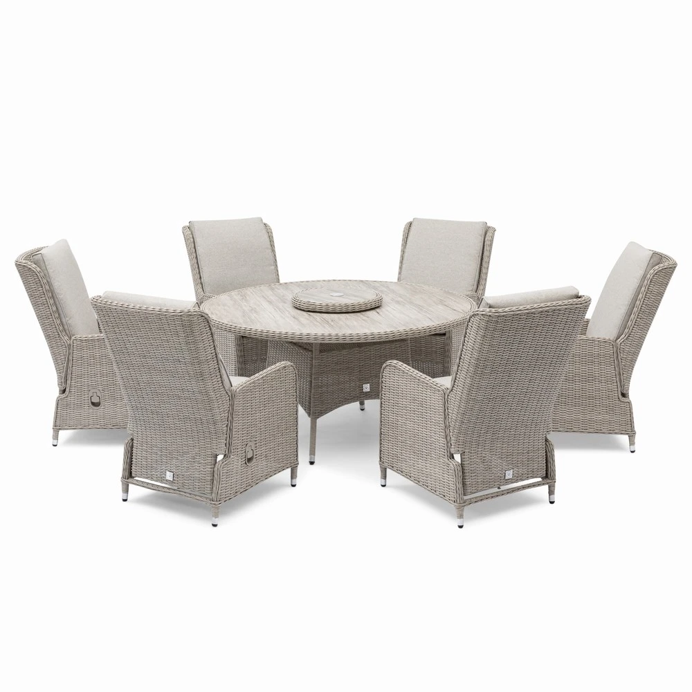 Make the most of your outdoor dining with the Athens 6-Seater Oval Dining Set - a perfect blend of classic style, modern functionality, and ultimate comfort. Ideal for gardens, patios, and terraces, this set includes a spacious round table, six high-back reclining chairs, and a removable lazy Susan, making it effortless to host family meals, alfresco dinners, or social gatherings. Complete with a parasol and base inclued, it offers shade, style, and convenience for any outdoor occasion.With its timeless rattan-effect weave, plush weatherproof cushions, and elegant neutral palette, the Athens set combines sophisticated design with all-weather practicality, delivering a premium outdoor dining experience that lasts season after season.