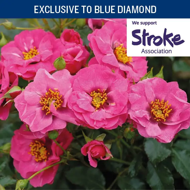£1 from each rose sold through Blue Diamond Garden Centres and Fryer’s Roses online will be donated to the Stroke Association. Charity number UK 211015