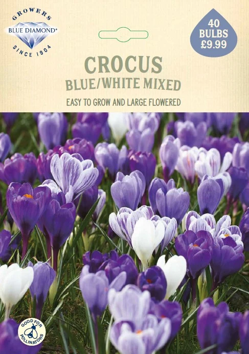These large flowered Crocus are showier than their species sister, ideal for planting in pots and containers. This rich duet of blue and white is a timeless classic, and a beautiful addition to any garden.