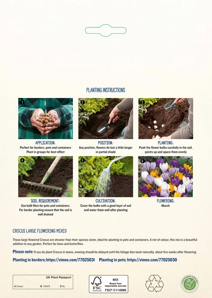 These large flowered Crocus are showier than their species sister, ideal for planting in pots and containers. A riot of colour, this mix is a beautiful addition to any garden. Perfect for bees and butterflies