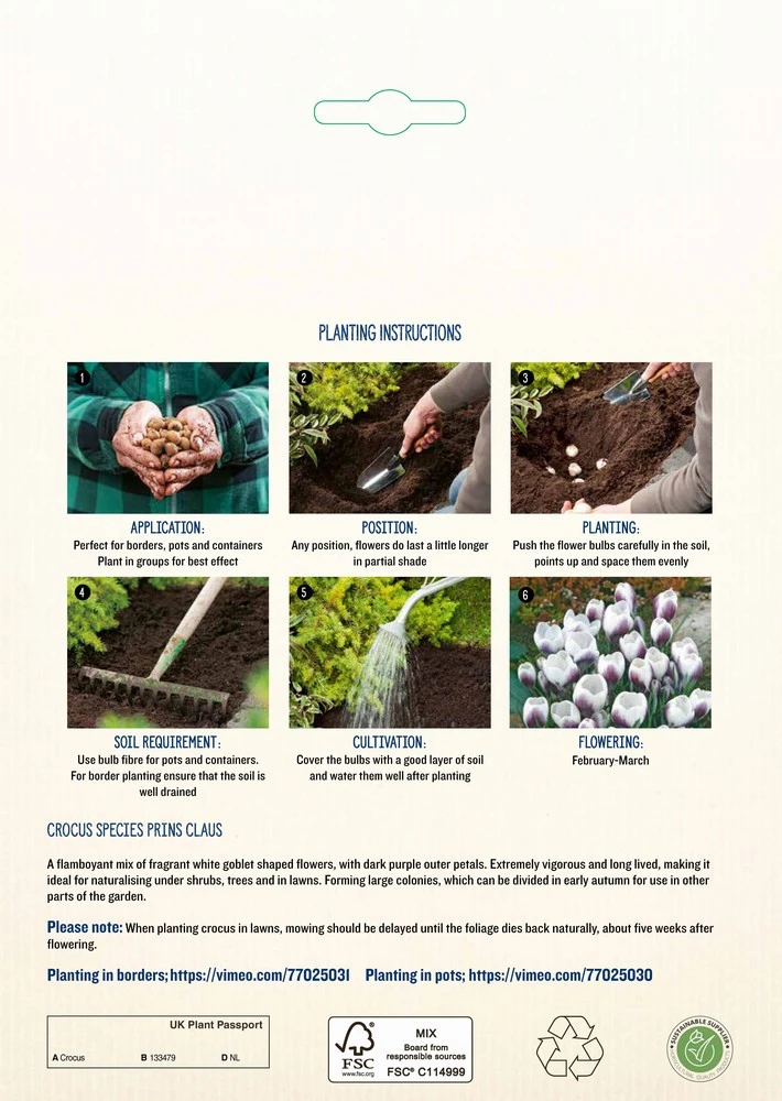A flamboyant mix of fragrant white goblet shaped flowers, with dark purple outer petals. Extremely vigorous and long lived, making it ideal for naturalising under shrubs, trees and in lawns. Forming large colonies, which can be divided in early autumn for use in other parts of the garden.