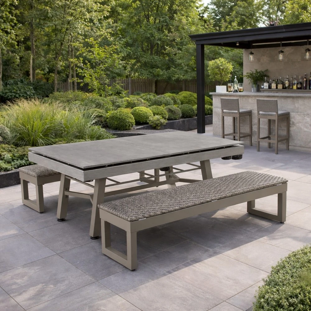 - Two-in-One Functionality - Enjoy the best of both worlds with a convertible outdoor dining and pool table. Switch from mealtime to game time in seconds with a smooth, practical design that adds excitement to any outdoor space.