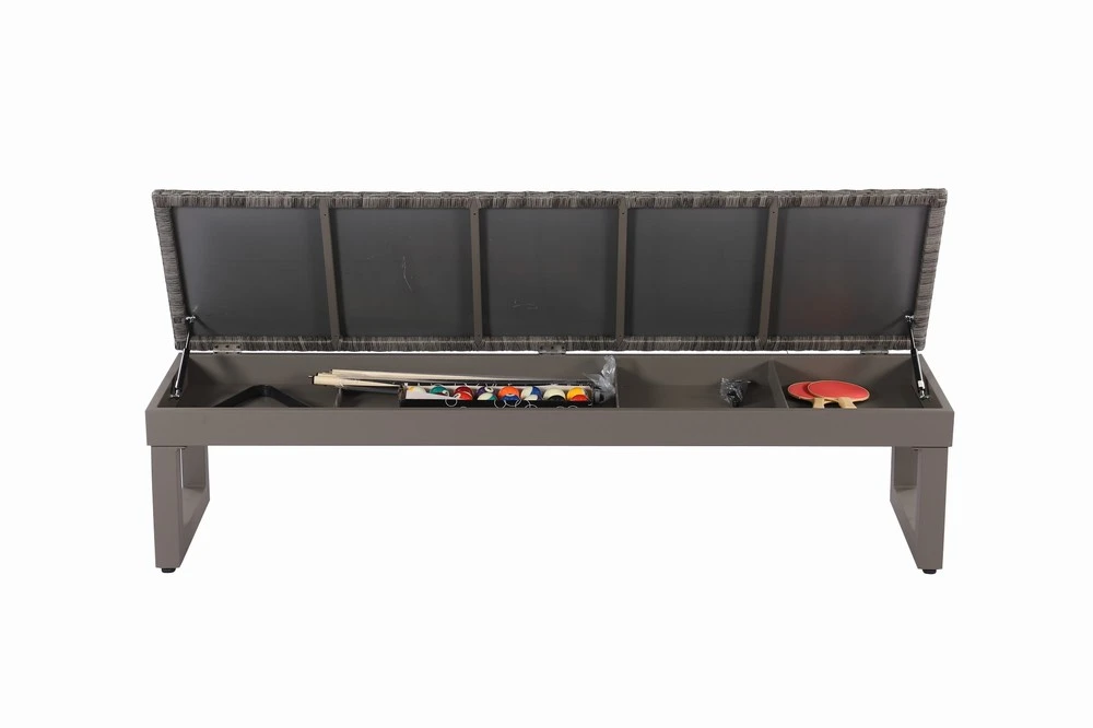 - Smart Storage Bench - One of the benches includes a built-in storage compartment, providing a convenient home for your pool accessories when not in use. No more clutter, no more misplaced cues.
