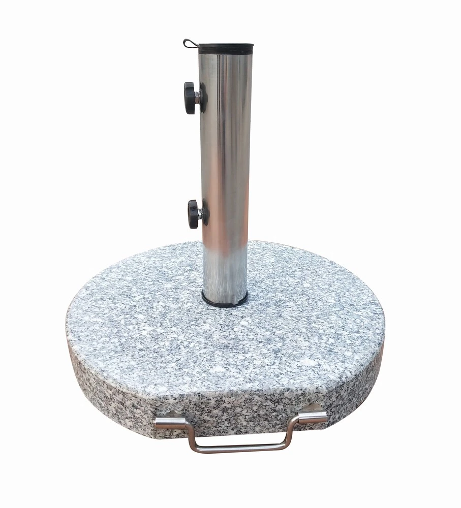 Our solid Diamond Granite parasol base provides a firm and sturdy base for holding your parasol and keeping it from tipping over or being blown away in light winds. The umbrella base has a durable granite construction that is very stable thanks to its hefty weight. The granite also has a high-end look and feel that gives the umbrella base a sophisticated appearance that will add a touch of elegance to your outdoor living space and complement your luxurious garden furniture. The tube includes 2 adapters to suit parasol poles with a diameter of 38 mm or 48 mm. It's very easy to mount your parasol to the base, and keep the parasol fastened tight and straight.
