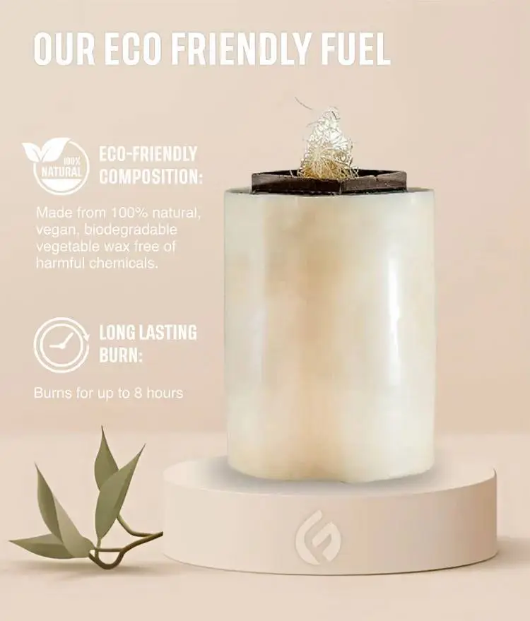 Fuelled by natural wax, each unit comes ready to use with fuel included. There are no flying embers and when you're done, just slide the lid across to extinguish, ready to use next time with no messy ash to clean up.