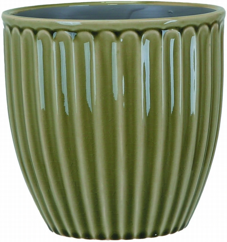 A elegant tall pot with a fluted shape. Available in a soft shade of grey or green