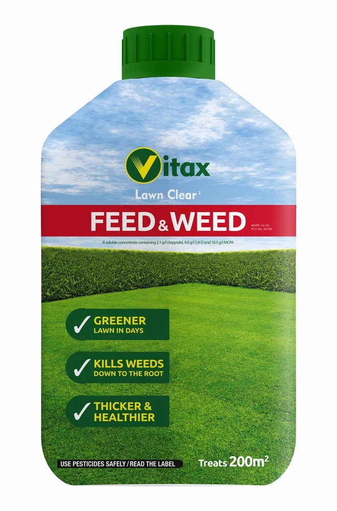 - Liquid lawn fertiliser with added weedkiller to treat common lawn weeds