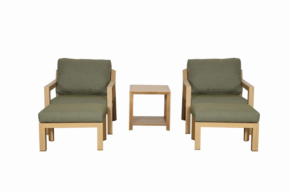 Featuring two generously sized armchairs with clean, modern lines and plush all-weather cushions, this set creates the ultimate spot for coffee mornings, cosy conversations. Crafted with a full wood-foil frame, the Hudson Duo delivers the warmth and natural beauty of timber with zero maintenance—no sanding, staining, or oiling ever required. Finished with a coordinating practical side table, it brings together effortless style, durability, and everyday convenience.