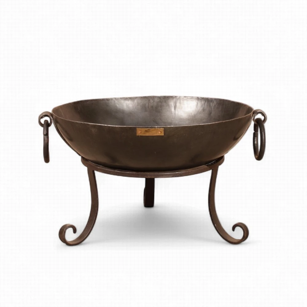 The Tula Firepit is hand-beaten in the traditional way from one piece of thick steel to form a beautiful fire bowl with robust hand-forged handles. Comes boxed with a Low Stand and Tongs to enjoy purely as a firepit.