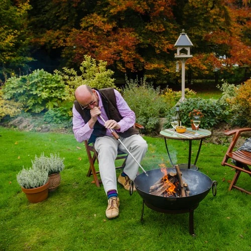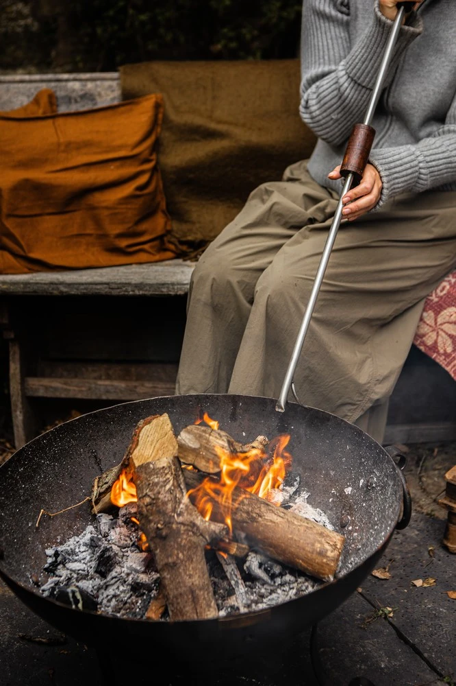 Handmade in stainless steel with mango wood handles the Blow Poker is a must have accessory for any firepit master. A traditional tool to rake the wood and coals into place. Made of a hollow tube to blow oxygen directly to the heart of a fire, the shaped tip forces a jet of air out, increasing the oxygen which feed to fire and watch the flames glow.