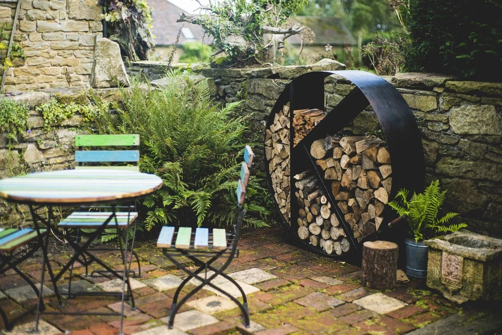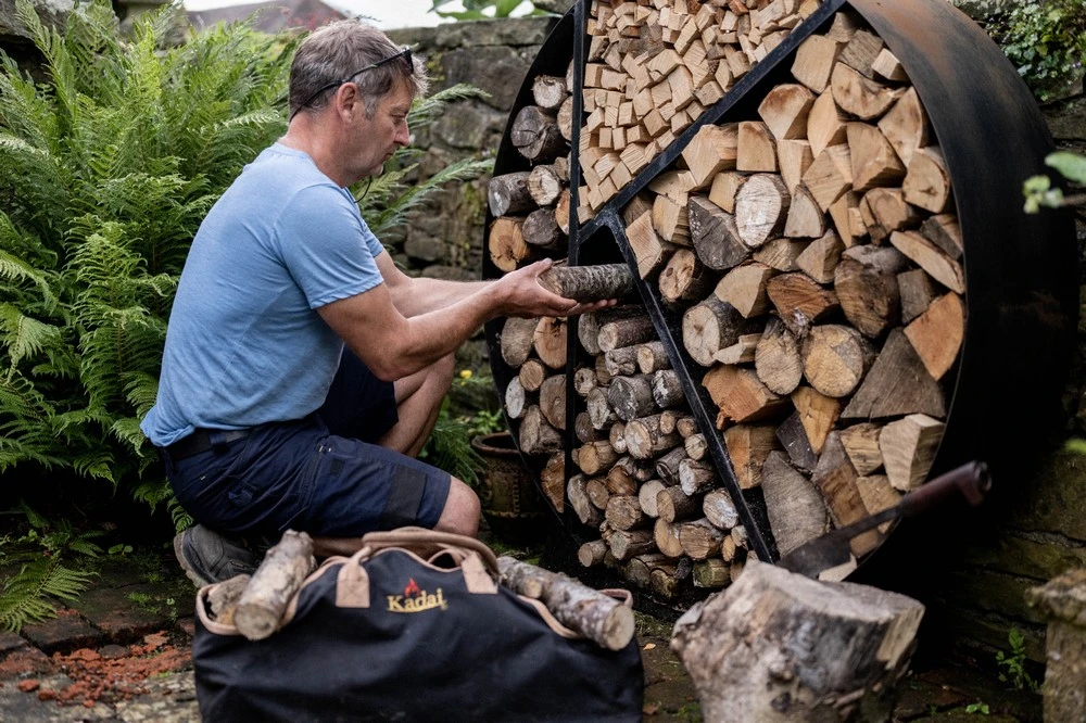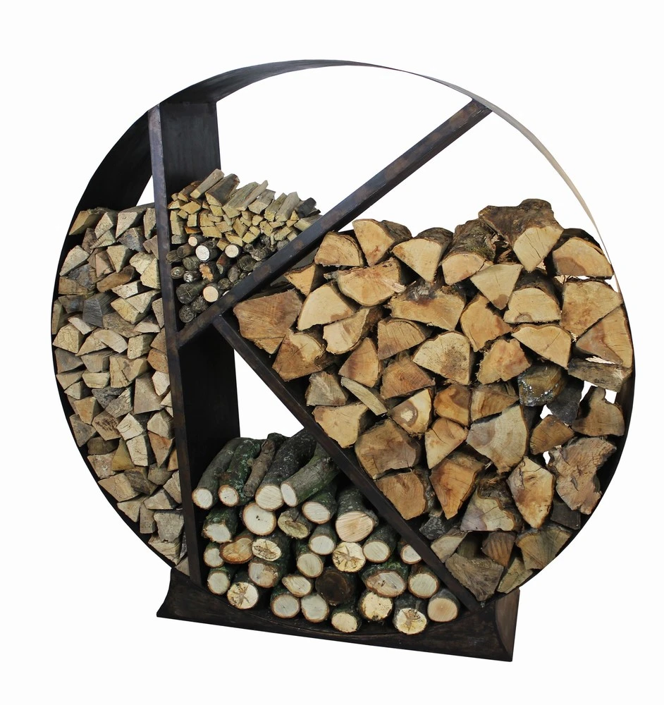 Made from mild steel in a circular shape with a 'K' for Kadai to help divide different log types and sizes, the Log Store makes the perfect house to keep wood dry. Equally useful indoors or in your garden.