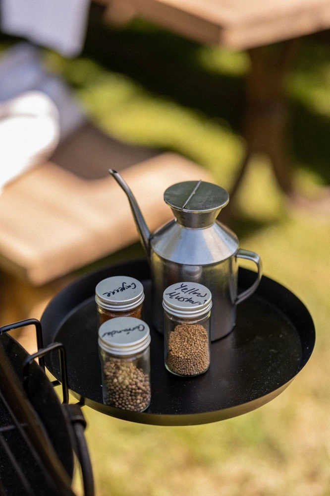 The Kadai Shelf neatly fits on the rim of any Kadai and is the perfect shelf for keeping those essentials close to hand - spices, oil, salt and of course a beer!