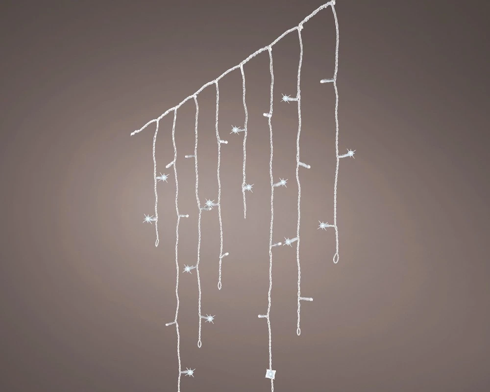 LED icicle lights with 10 function snowfall effect settings, suitable for indoor or outdoor use