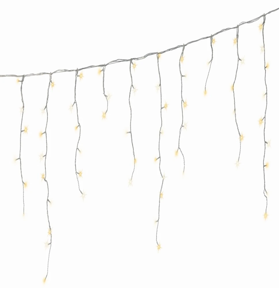 LED icicle lights with 10 function snowfall effect settings, suitable for indoor or outdoor use
