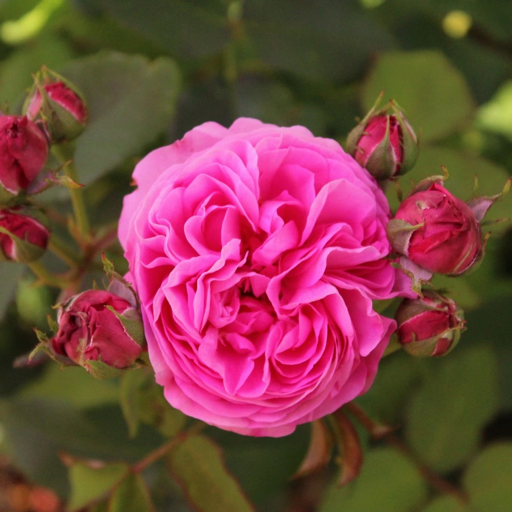 - Produces masses of Camellia-like, old English style, lilac-tinted pink blooms.