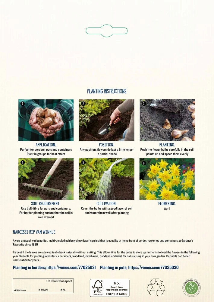 A very unusual, yet beautiful, multi-petaled golden yellow dwarf narcissi that is equality at home front of border, rockeries and containers. A Gardner’s Favorite since 1890