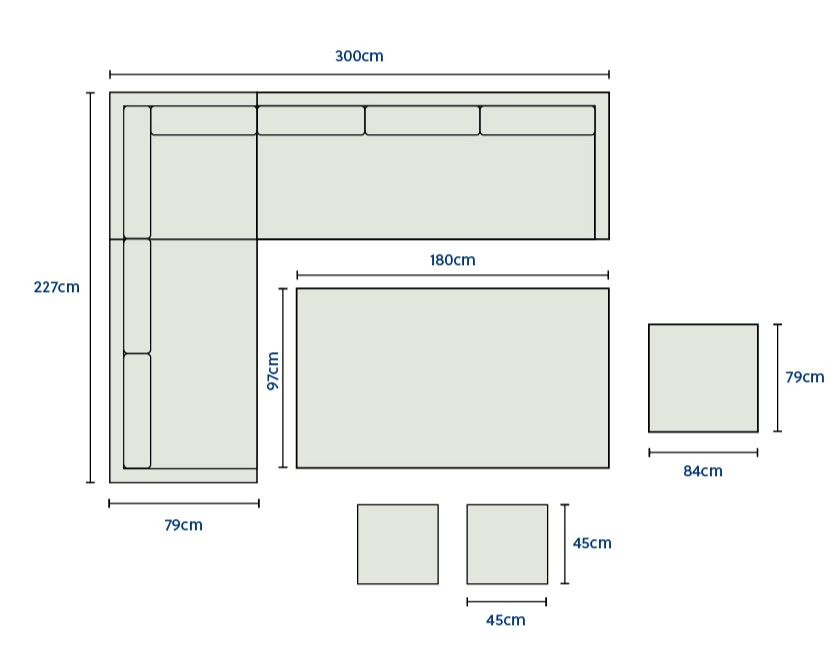 - Generous Family-Friendly Layout - Includes a wrap-around corner sofa, armchair, and two footstools for flexible, sociable seating.
