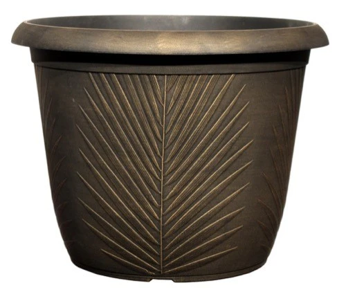 This Palm planter with its unique modern design would be a stylish addition to your garden or balcony . This planter has a classic palm design and hand painted in a black/bronze effect finish.