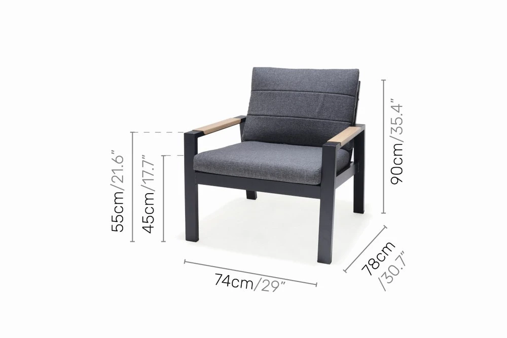 A smart garden sofa set with a comfortable three-seat sofa and two matching armchairs; this lounge set will seat up to five people for relaxed outdoor entertaining. A practical, rectangular coffee table completes the set. The frames of the Panama outdoor furniture are made from robust aluminium. This ensures the furniture is lightweight, low maintenance and will not rust. The seat backs and seats of the sofa and chairs are made from Lifestyle Garden’s Weather-net mesh, a hardwearing and weather-resistant material that can be left outside year-round. The cushions of the Panama sofas and armchairs are made with Lifestyle Garden’s Olefin fabric. Olefin is a hardwearing woven fabric that feels lovely but is not waterproof. We recommend you store the cushions inside when not in use.
