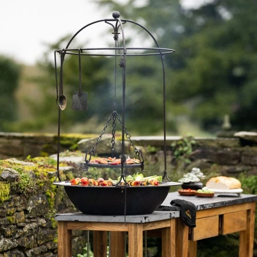 Elevate your outdoor cooking experience with our Tripod Pulley system, uniquely designed for the Plancha Kadai. This innovative solution allows you to raise and lower your food via the supplied chain, slow cooking or searing your dishes to perfection. Combine the Pulley with any of our 6 Tripod Cookware accessories, enhancing your outdoor cooking experience with versatility and innovation. Includes the Pulley Frame, which attaches to the Plancha Plate, and Pulley chain. Improve your live fire cooking game with the innovative Tripod Pulley, giving you an additional cooking surface when combined with any of our 6 Tripod accessories. Please note only compatible with the Plancha Kadai.