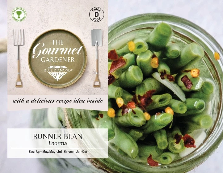 • A highly popular, traditional variety• Long slender pods of exhibition quality• Can be nurtured to an enormous 50cm (20”) long• Pods have excellent flavour, colour and shape• High yielding and extremely vigorous plants• Good source of vitamin C and fibre