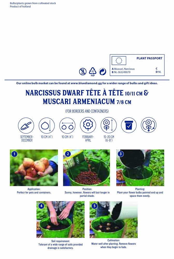 A classic combination of Narcissi Tete a Tete and Muscari Armenicum