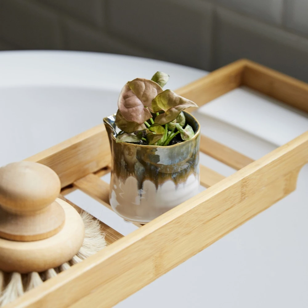 A hand thrown pot with a unique two tone glaze in a reactive finish, in a range of colours to suit any interior