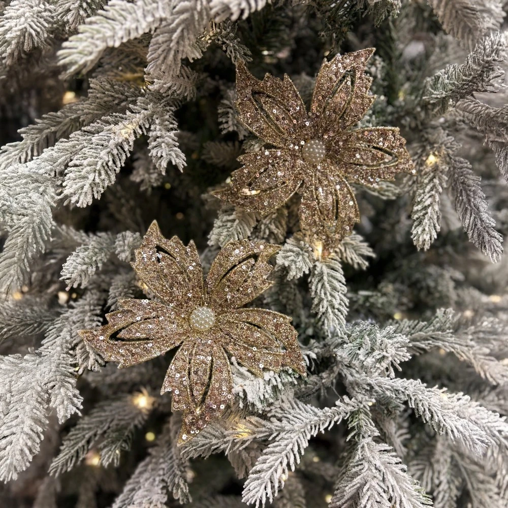 This glitzy silver beaded "Clip on" cut out flower decoration enhances any floral display with a touch of glamour, or can be used in a variety of other ways, including tree, wreath or garland decoration, or placed on its own as a place setting decoration for your Christmas table.