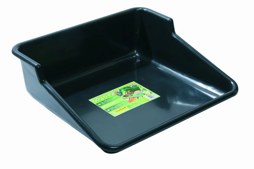 - This tough one piece potting tray is now established as an essential garden accessory. Mess & dirt are confined within the tray whilst low front allows easy access to the work space. The tidy tray also has many other uses around the home. The potting tray is also waterproof and dirt proofMade from recycled polypropylene, this item is available in Green and Budget Black.Size Check: 61cm (24”) Long 55cm (21.5”) Wide 20cm (8”) High
