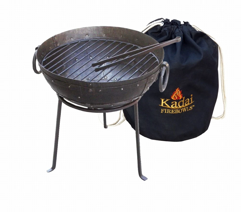 Our smallest and most portable Kadai is designed to be compact and versatile. The Travel Kadai is easily portable and a perfect size for small terraces, camping, taking on holiday or to the beach. A convenient small barbecue or fire bowl, that packs away neatly into its own cotton Duffle Bag for travelling.