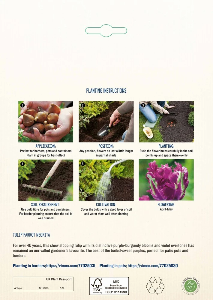 For over 40 years, this show stopping Tulip with its distinctive purple-burgundy blooms and violet overtones has remained an unrivalled gardener’s favourite. The best of the boiled-sweet purples, perfect for patio pots and borders.